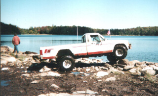 Very nice suspension in this Jeep! Don in his XJ with a long arm kit and a Chevy 350. Don has also painted it red white and blue |